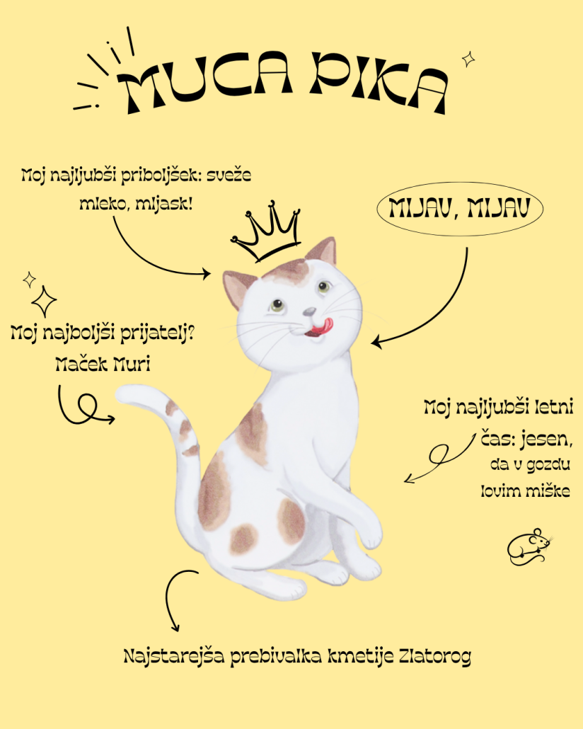 - Igrivo zgodbo o muci Piki, ki otroke spodbuja k raziskovanju zvokov in besed.